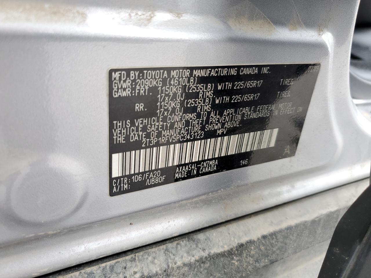 - ВИН: 2T3P1RFV5PC******