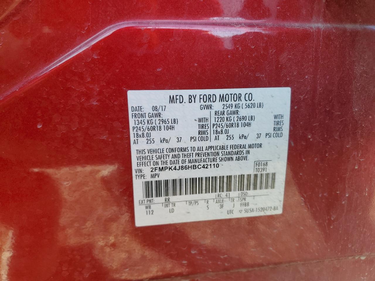 - ВИН: 2FMPK4J86HB******