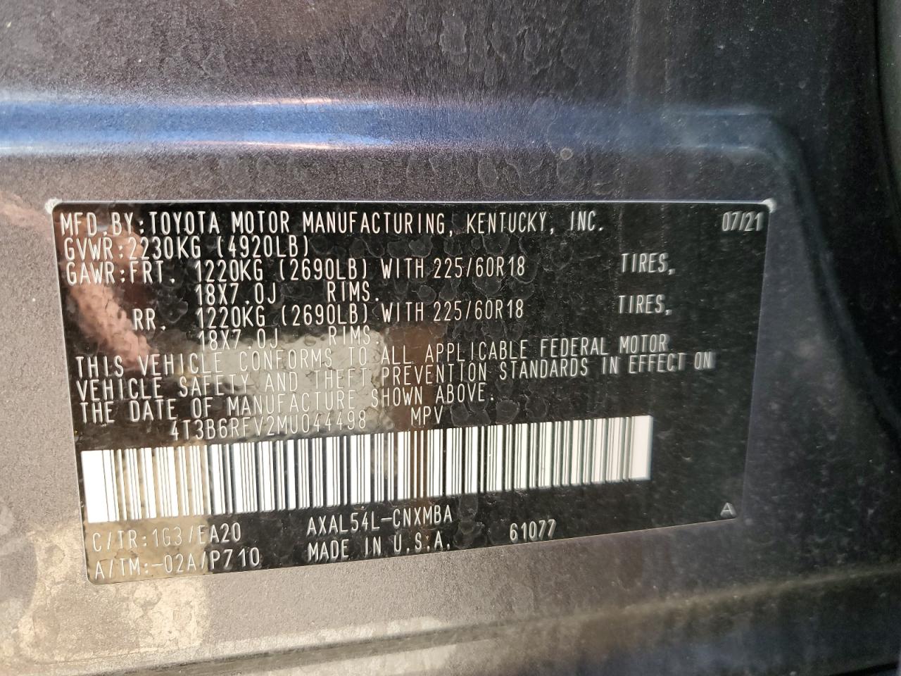 - ВИН: 4T3B6RFV2MU******