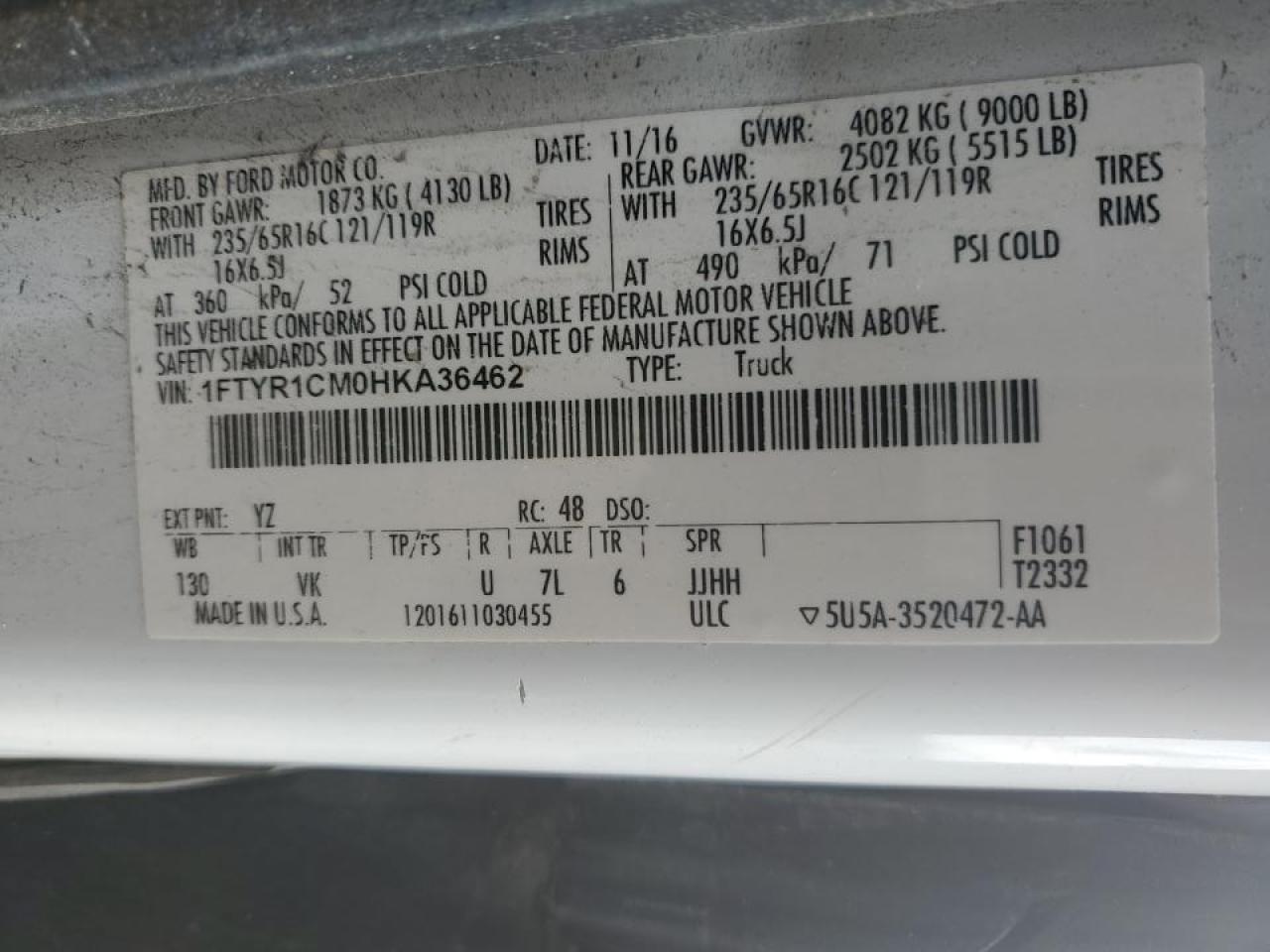 - ВИН: 1FTYR1CM0HK******