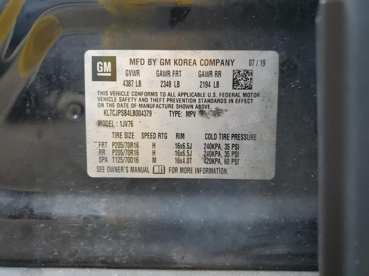 - ВИН: KL7CJPSB4LB******