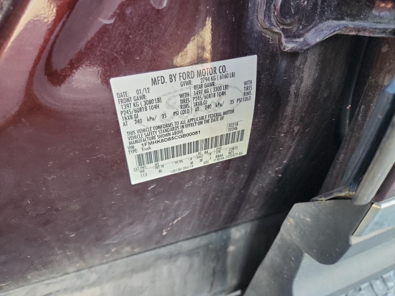- ВИН: 1FMHK8D85CG******
