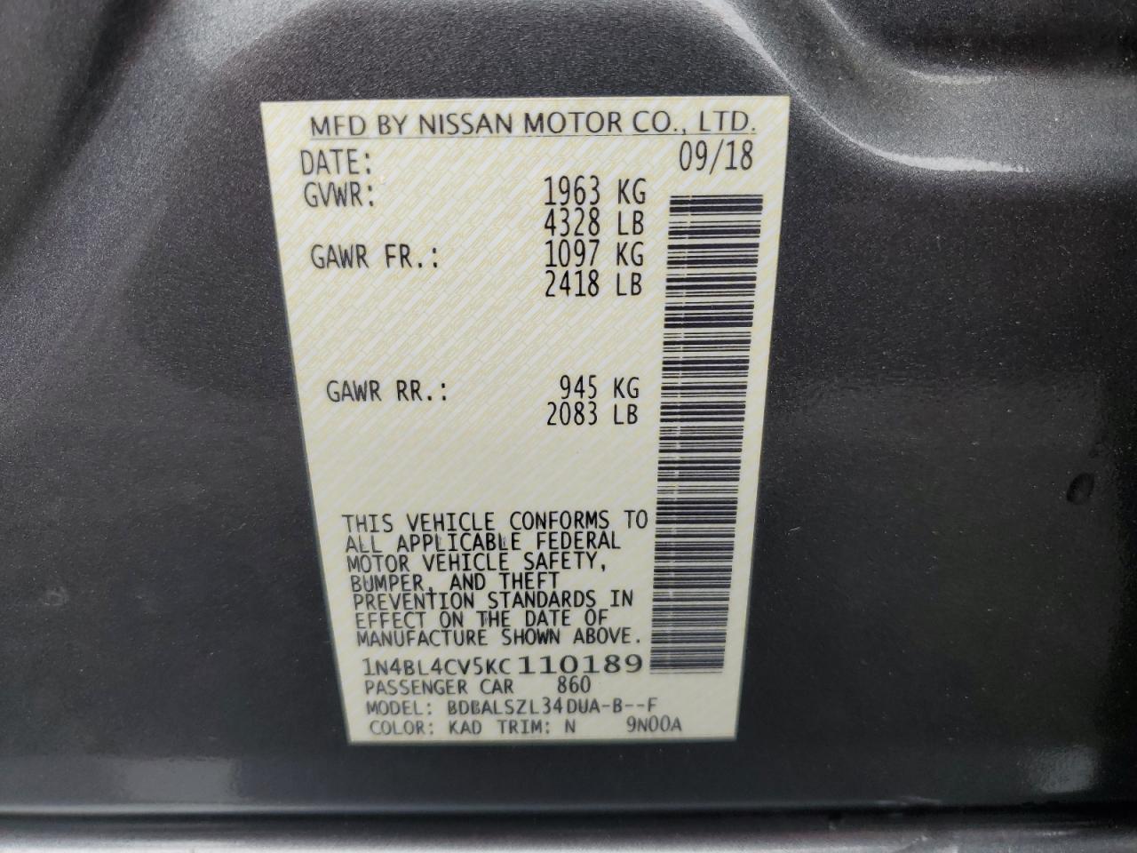 - ВИН: 1N4BL4CV5KC******