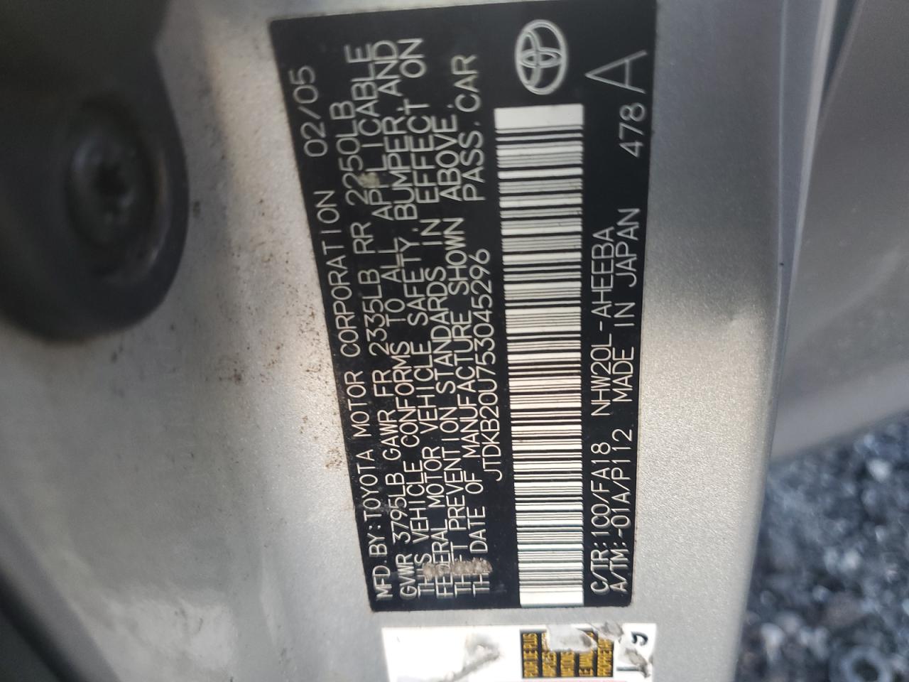 - ВИН: JTDKB20U753******