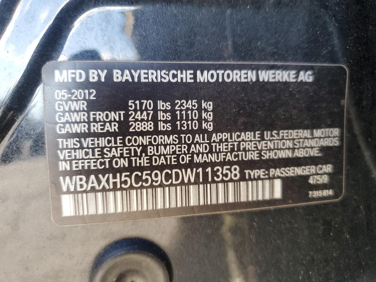 - ВИН: WBAXH5C59CD******
