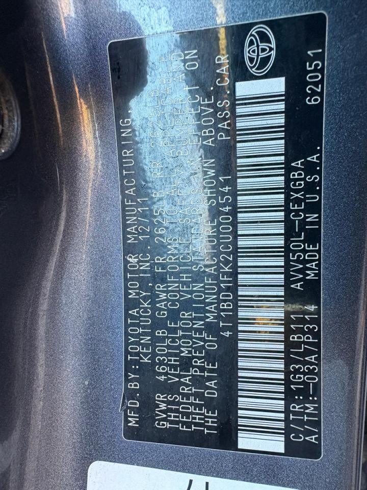 - ВИН: 4T1BD1FK2CU******