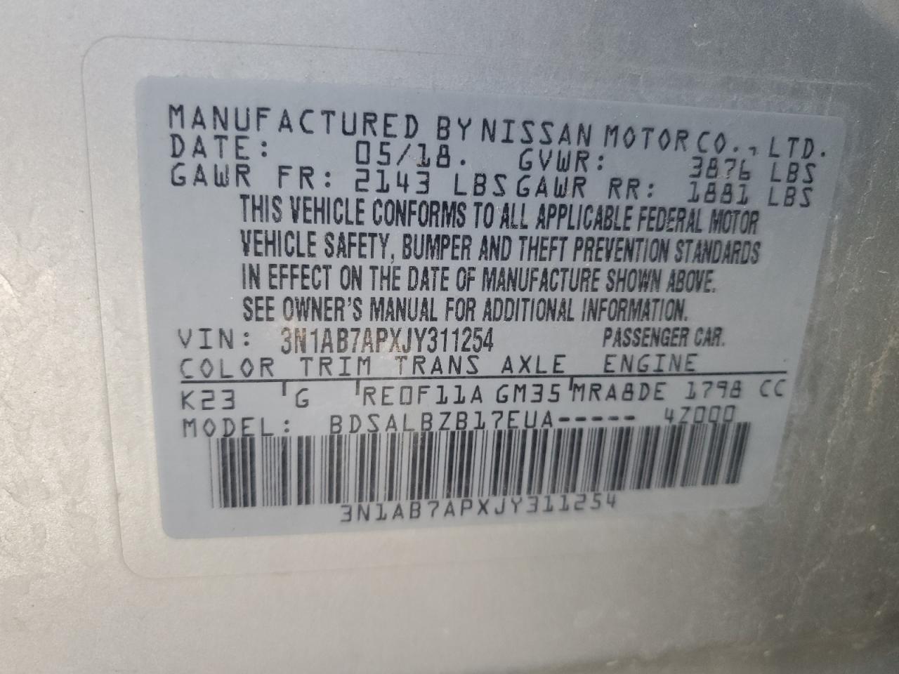 2018 NISSAN SENTRA S из США