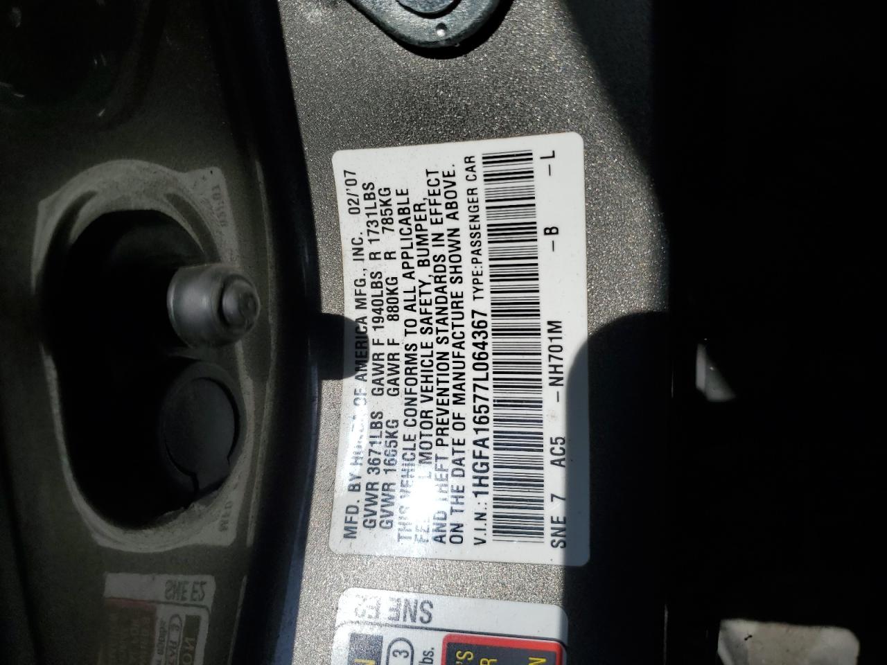 - ВИН: 1HGFA16577L******