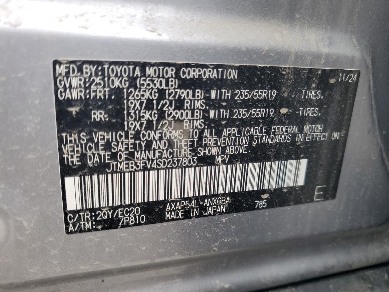 - ВИН: JTMEB3FV4SD******
