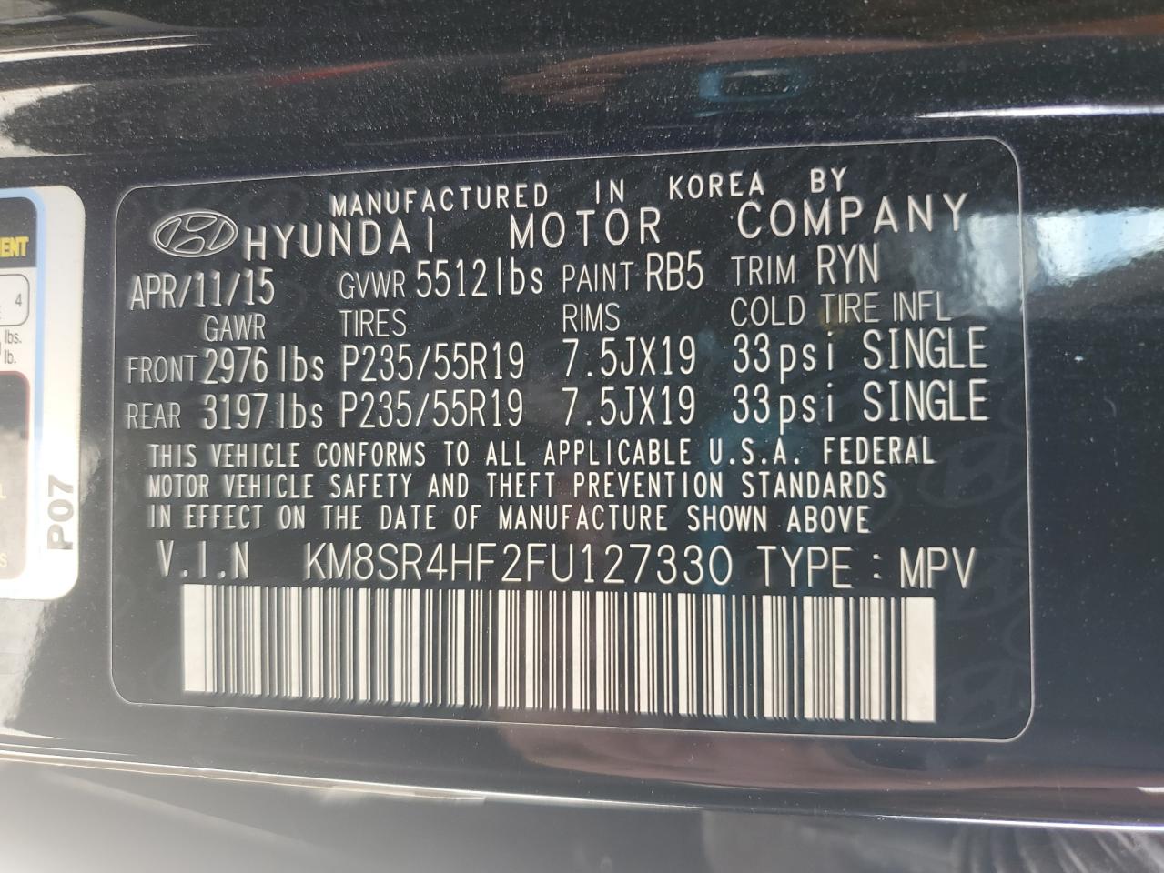 - ВИН: KM8SR4HF2FU******