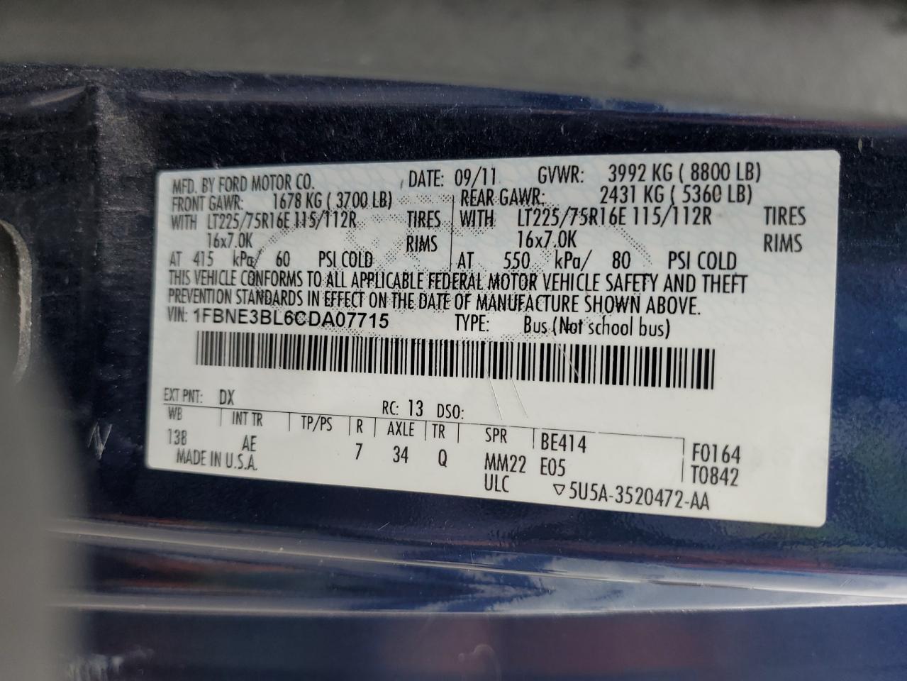 - ВИН: 1FBNE3BL6CD******