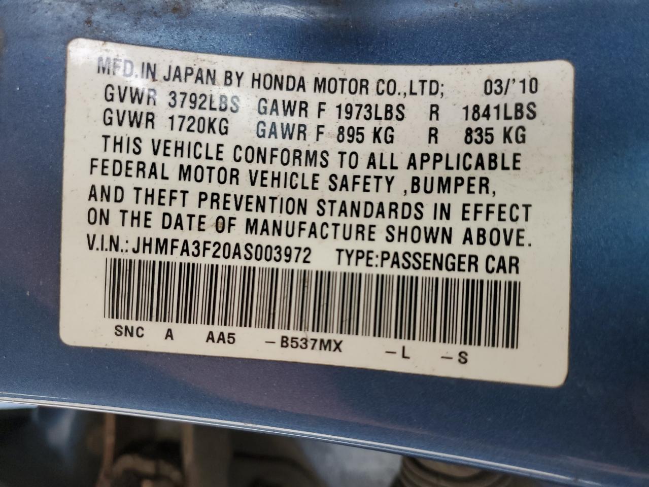 - ВИН: JHMFA3F20AS******
