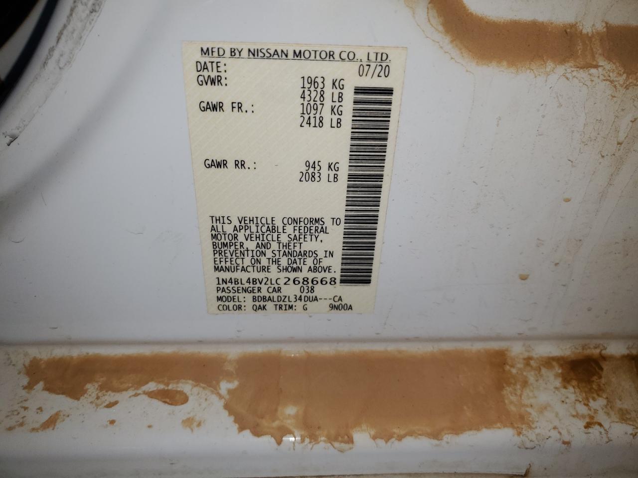 - ВИН: 1N4BL4BV2LC******