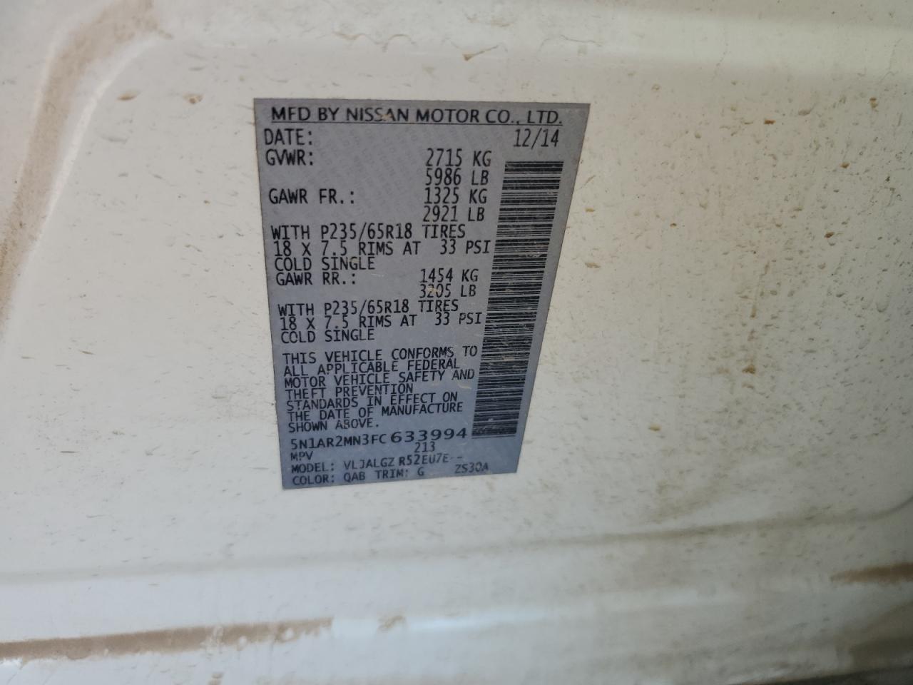 - ВИН: 5N1AR2MN3FC******