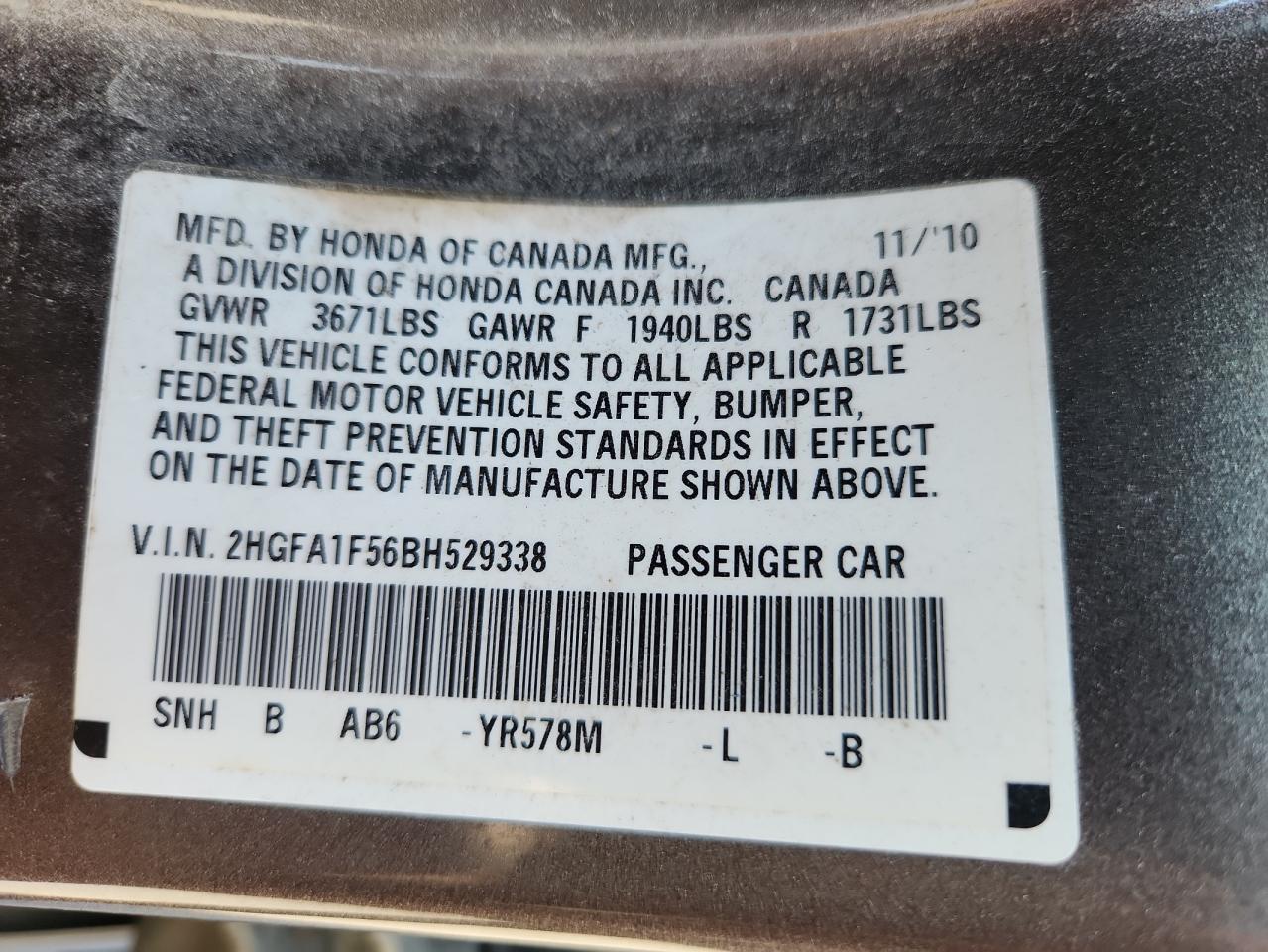 - ВИН: 2HGFA1F56BH******