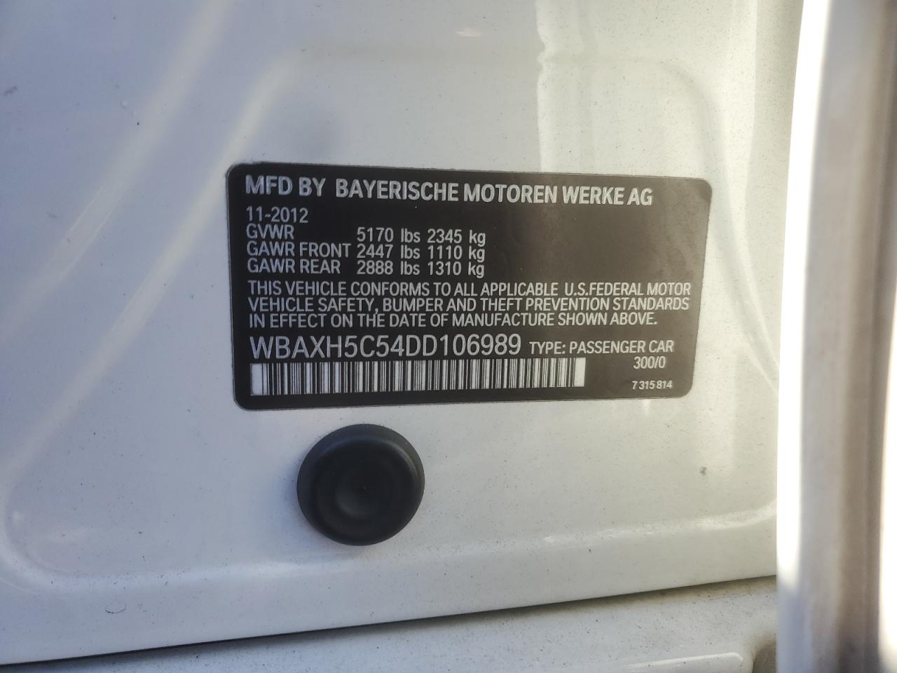 - ВИН: WBAXH5C54DD******