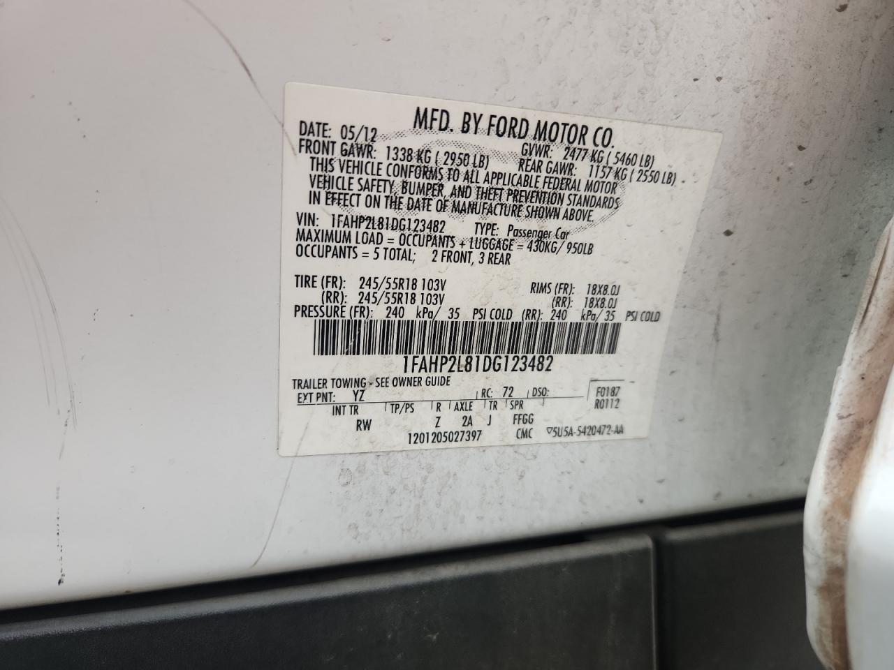 - ВИН: 1FAHP2L81DG******