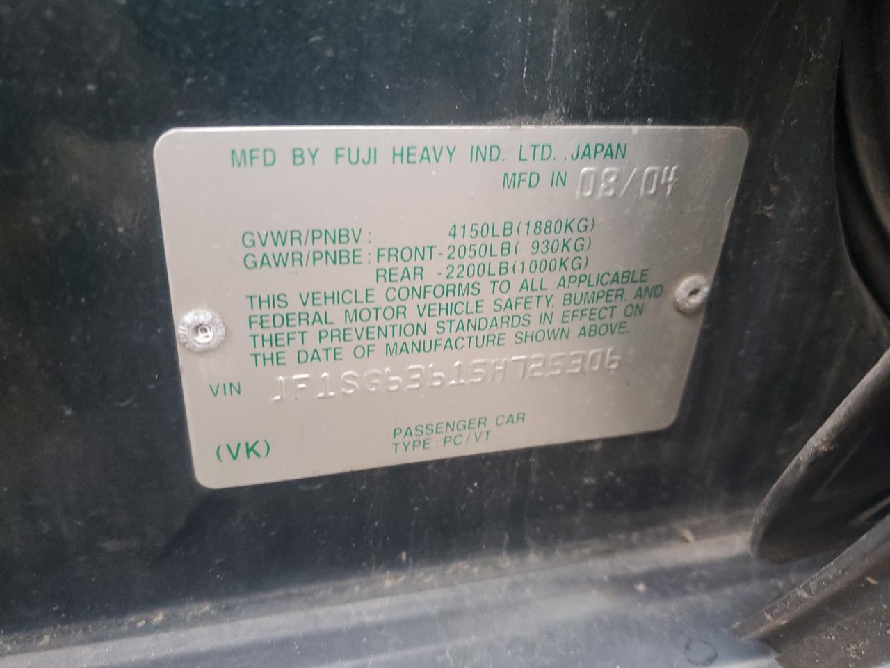 - ВИН: JF1SG63615H******