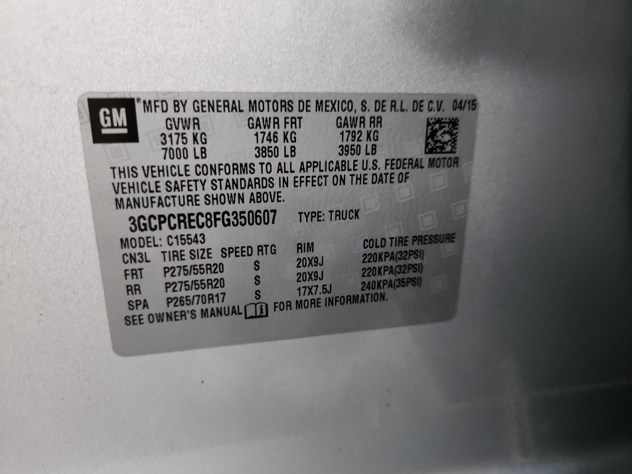 - ВИН: 3GCPCREC8FG******