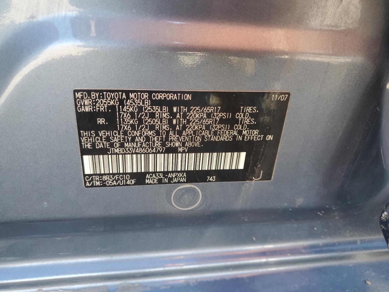 - ВИН: JTMBD33V486******