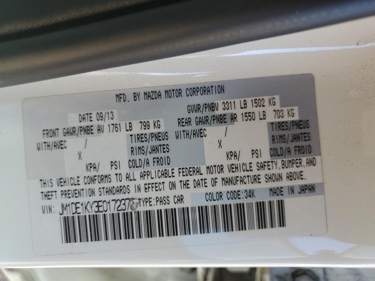 - ВИН: JM1DE1KY3E0******