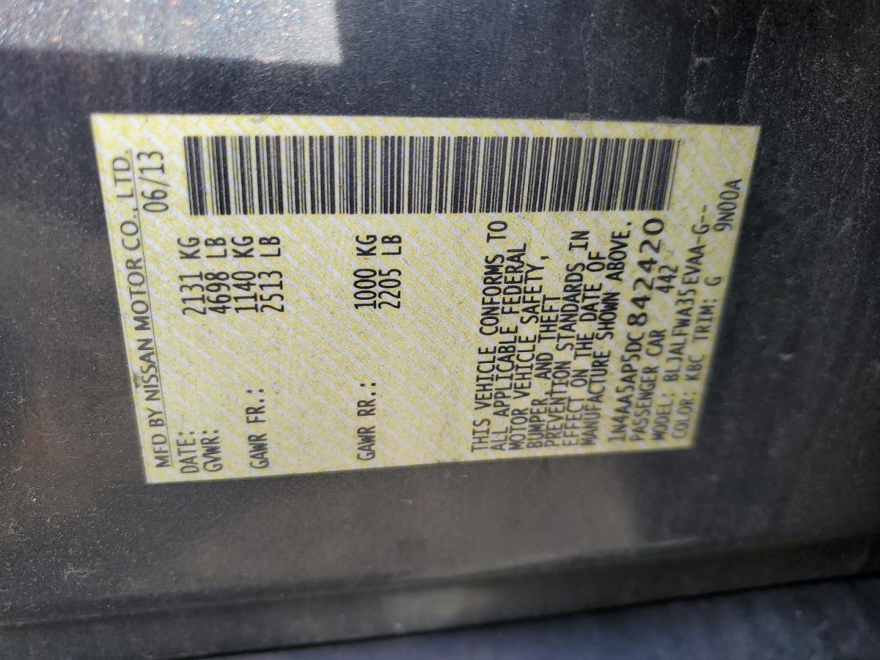 - ВИН: 1N4AA5AP5DC******