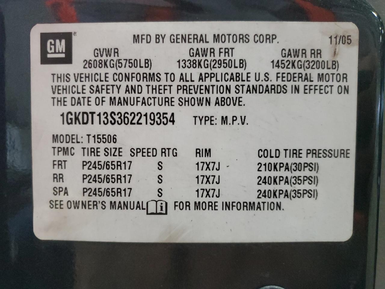 - ВИН: 1GKDT13S362******