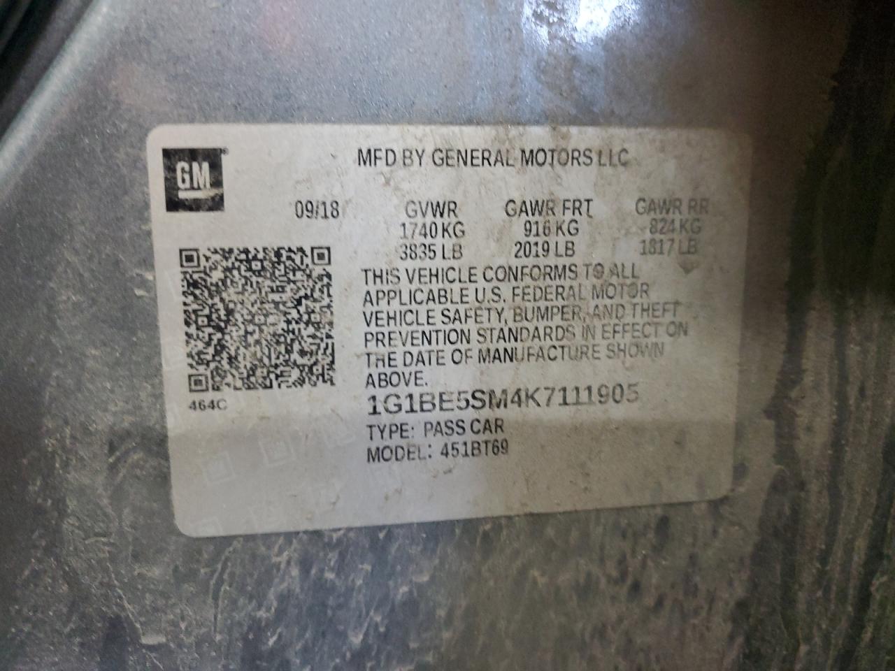 - ВИН: 1G1BE5SM4K7******