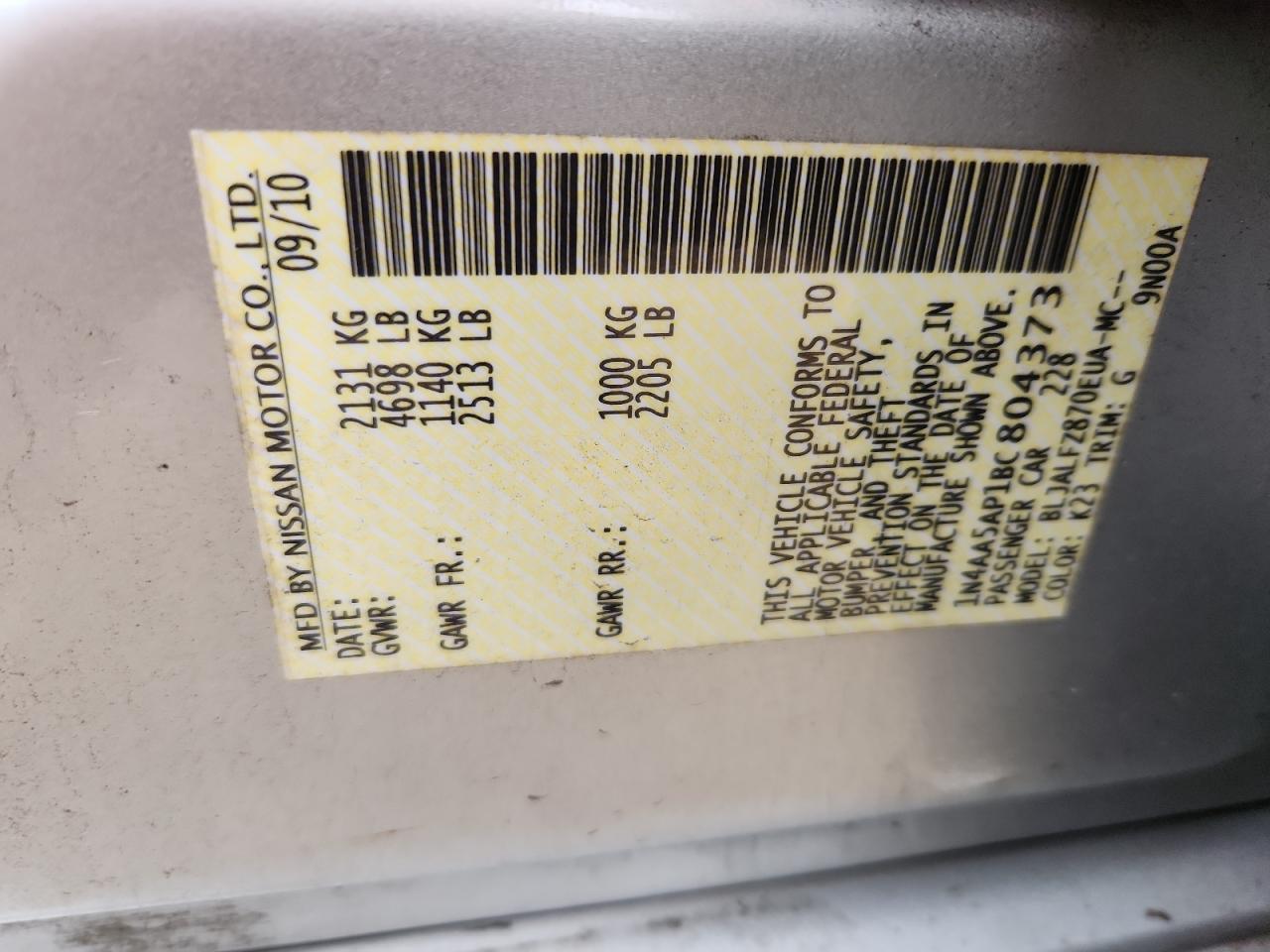 - ВИН: 1N4AA5AP1BC******