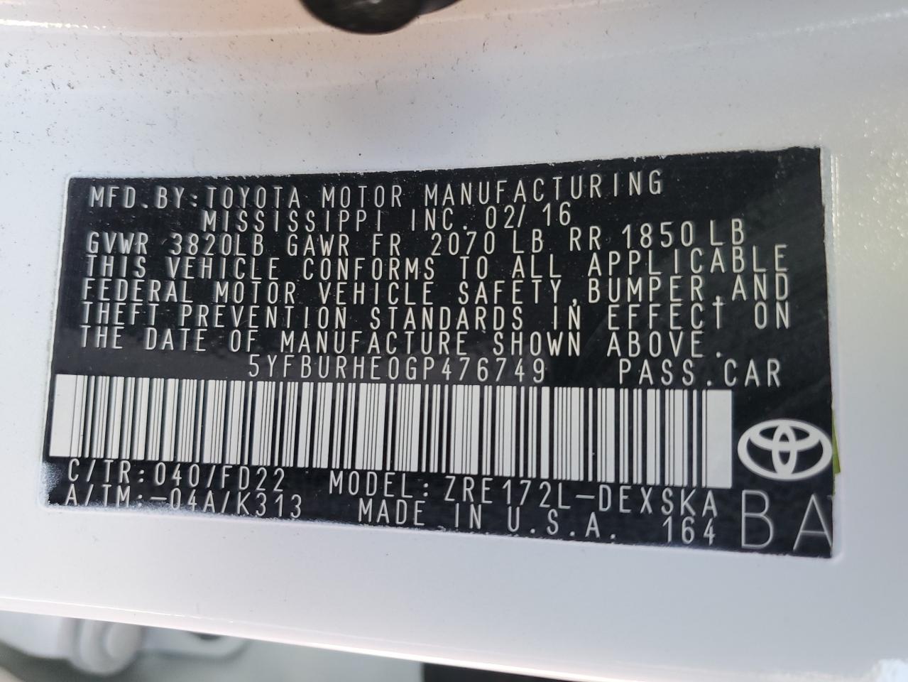 - ВИН: 5YFBURHE0GP******