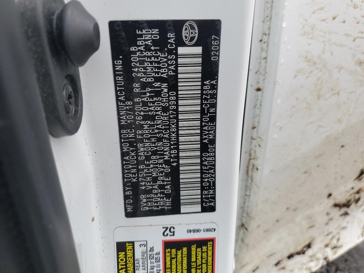 - ВИН: 4T1B11HK8KU******