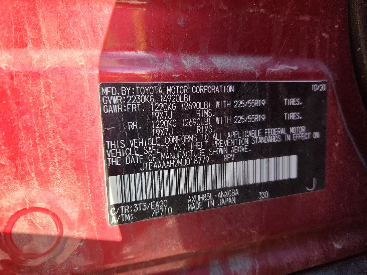 - ВИН: JTEAAAAH2MJ******
