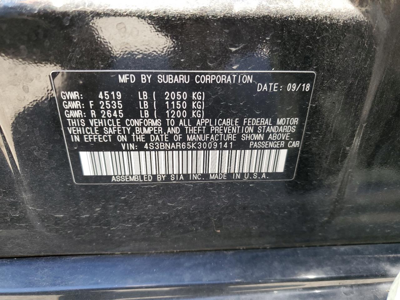 - ВИН: 4S3BNAR65K3******