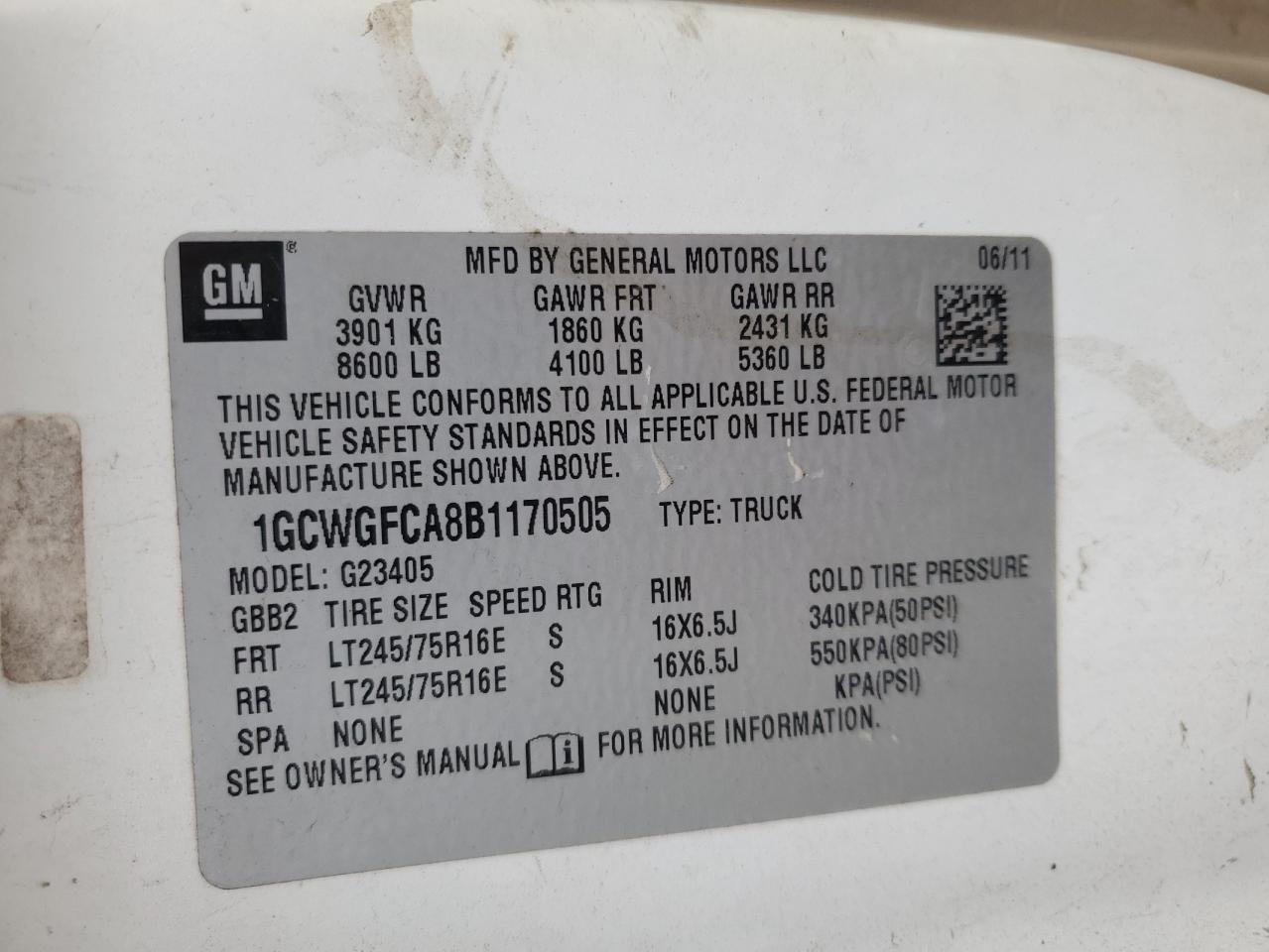 - ВИН: 1GCWGFCA8B1******