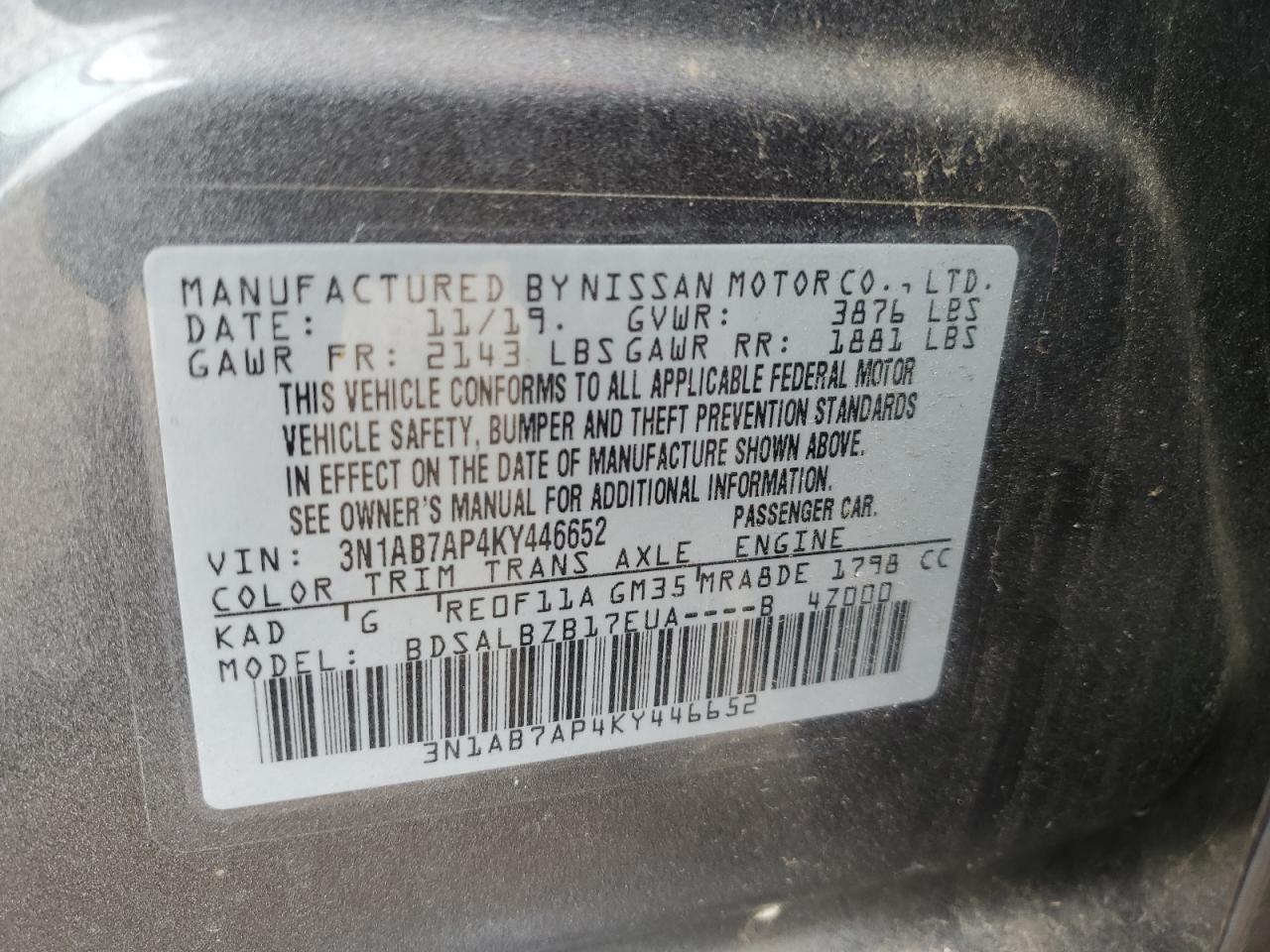 - ВИН: 3N1AB7AP4KY******