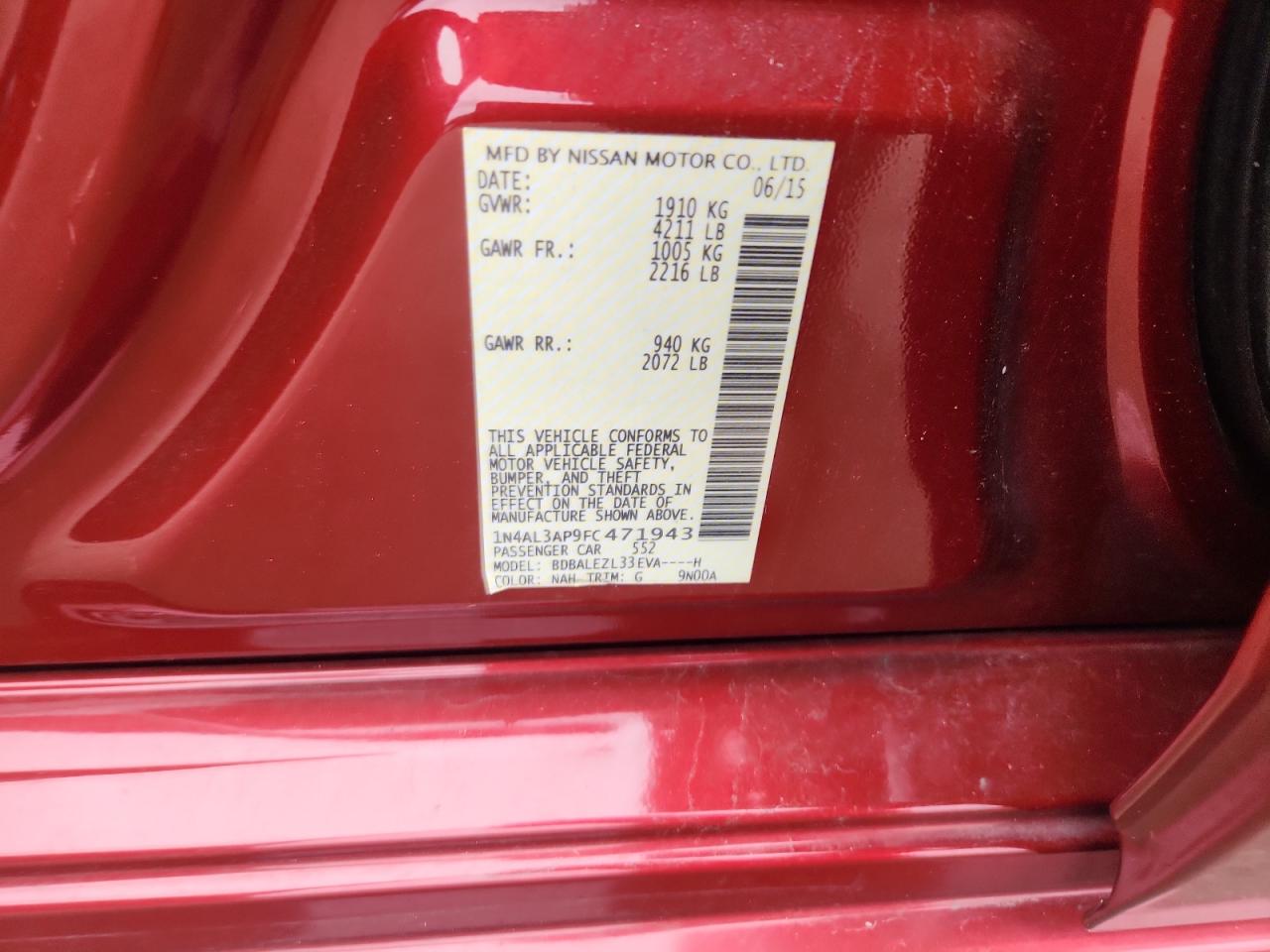 - ВИН: 1N4AL3AP9FC******