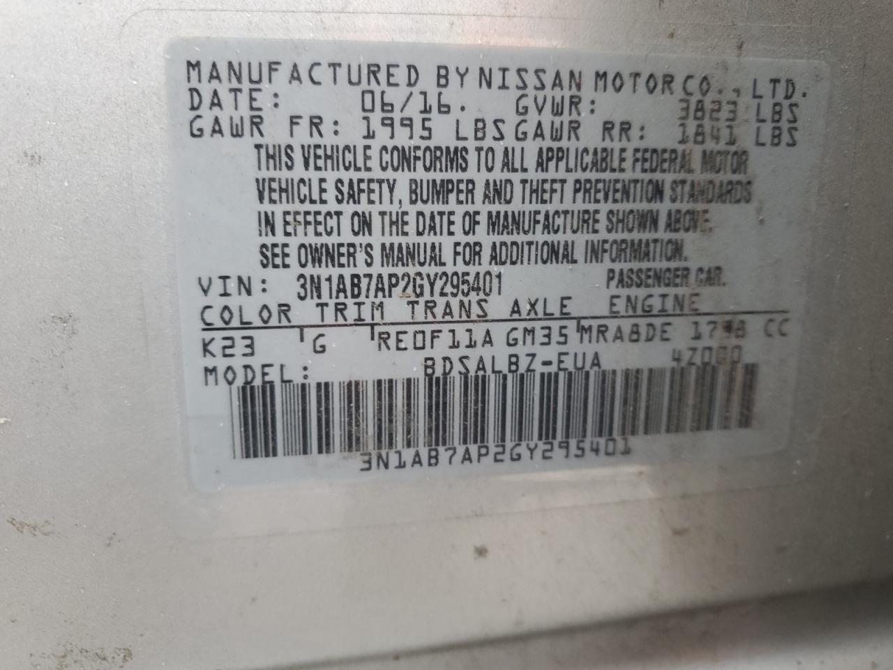 - ВИН: 3N1AB7AP2GY******