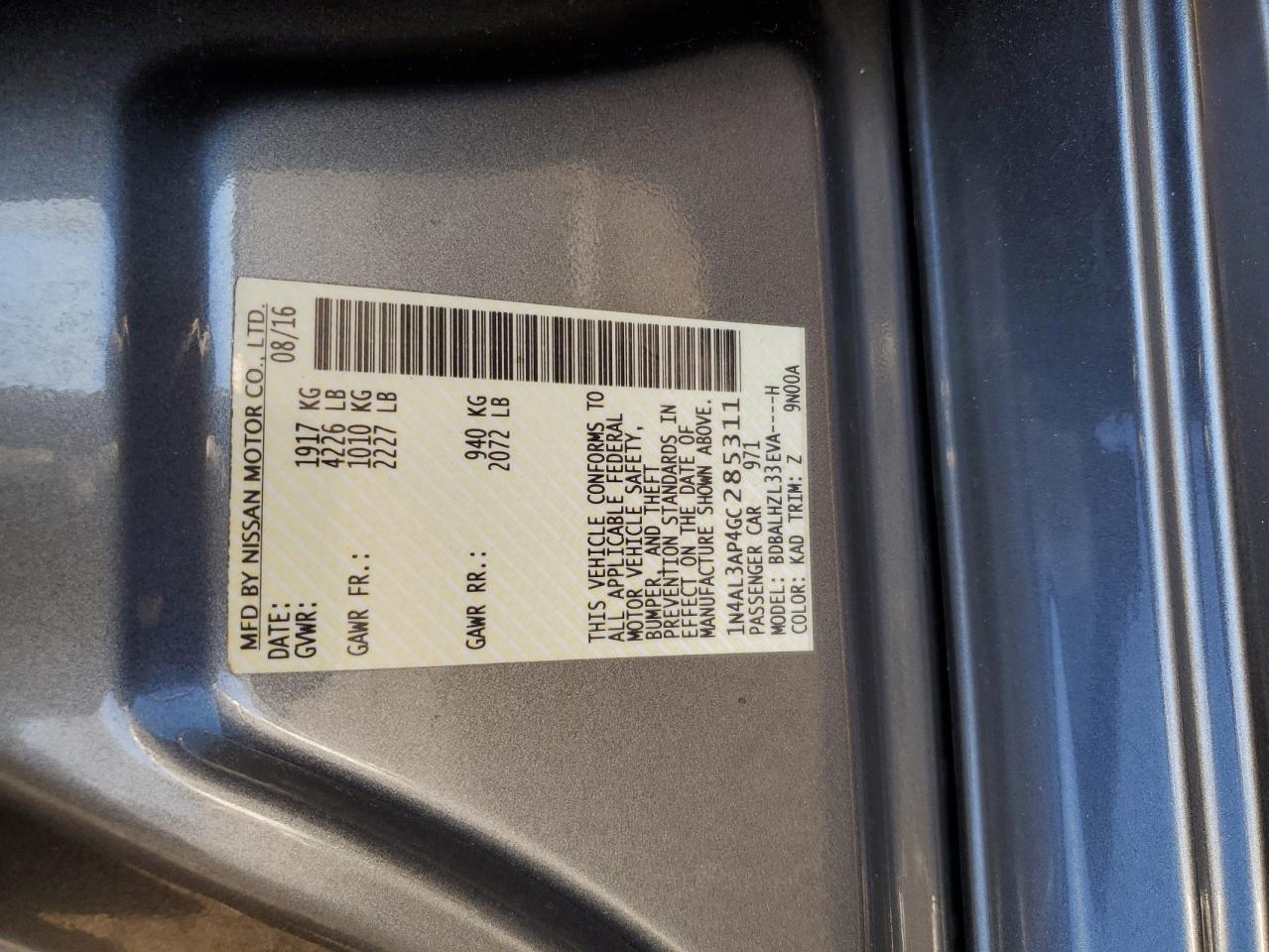- ВИН: 1N4AL3AP4GC******
