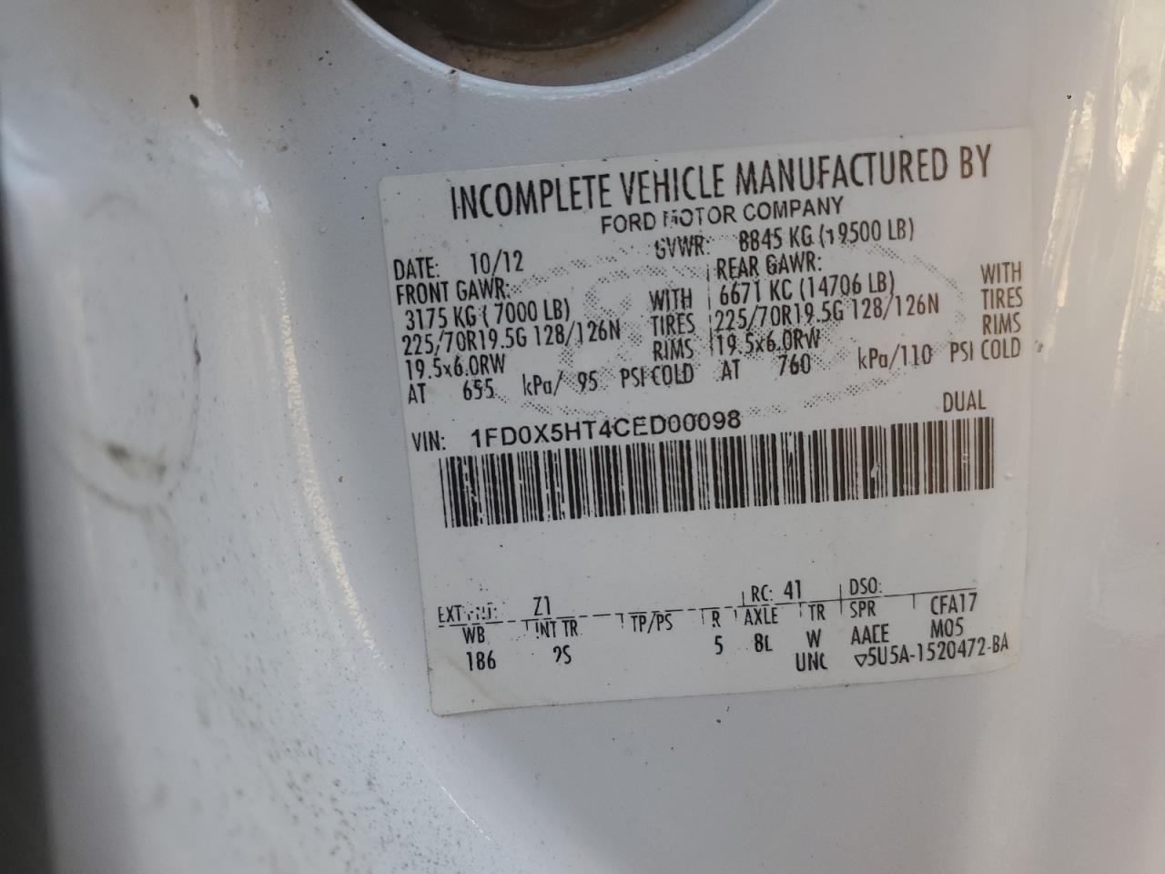 - ВИН: 1FD0X5HT4CE******