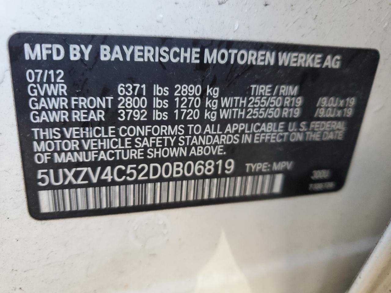 - ВИН: 5UXZV4C52D0******