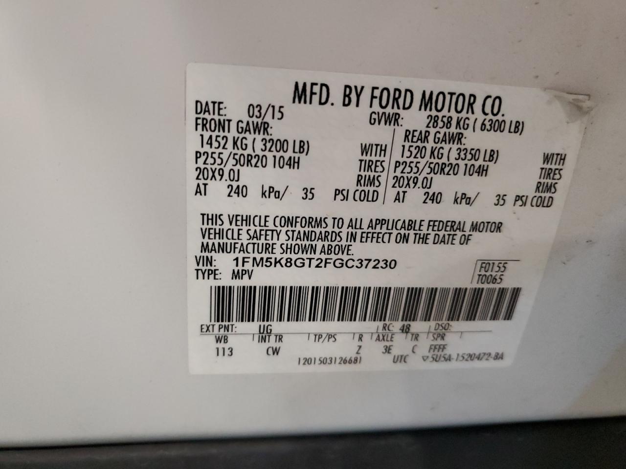 - ВИН: 1FM5K8GT2FG******