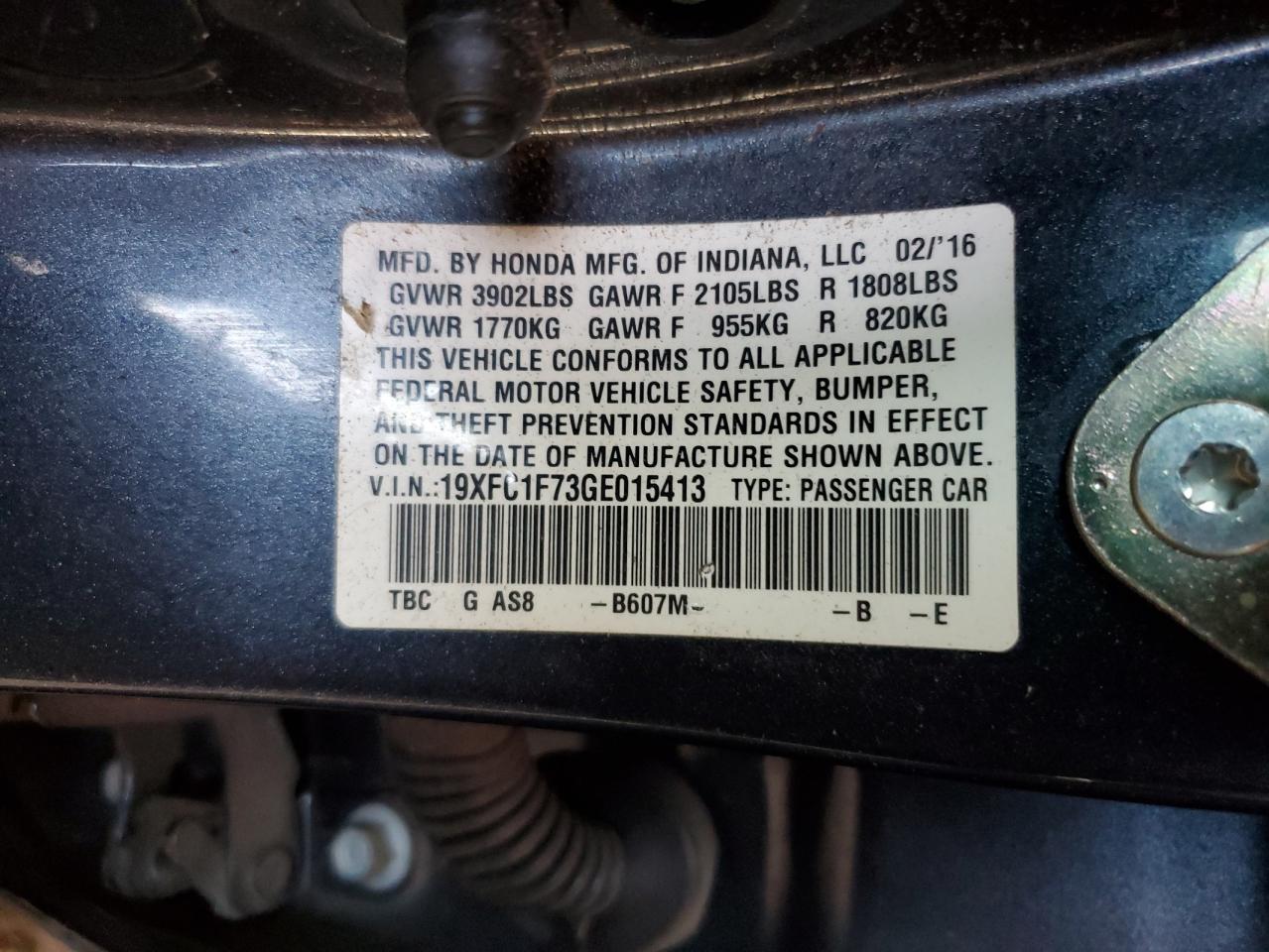 - ВИН: 19XFC1F73GE******