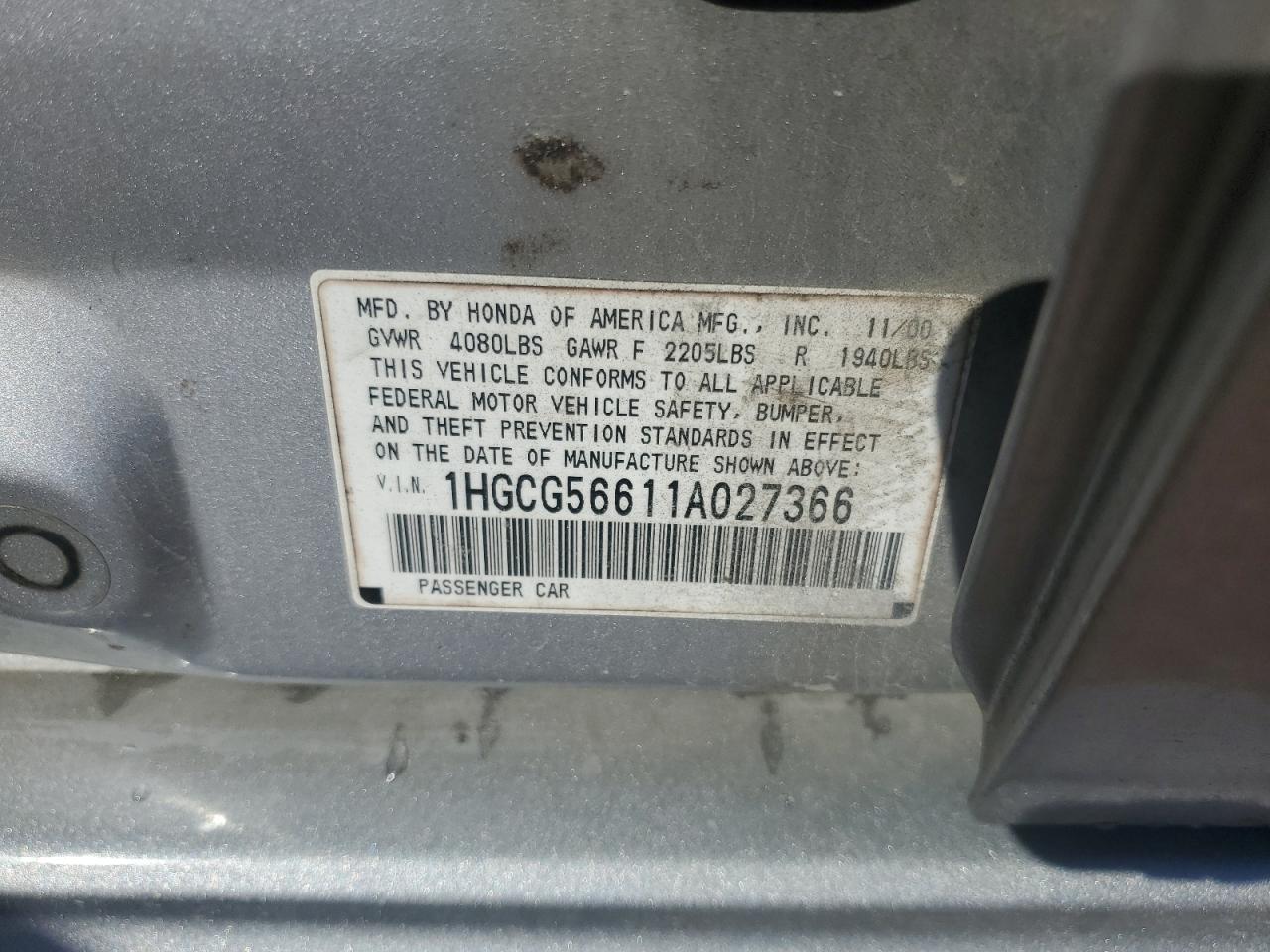 - ВИН: 1HGCG56611A******