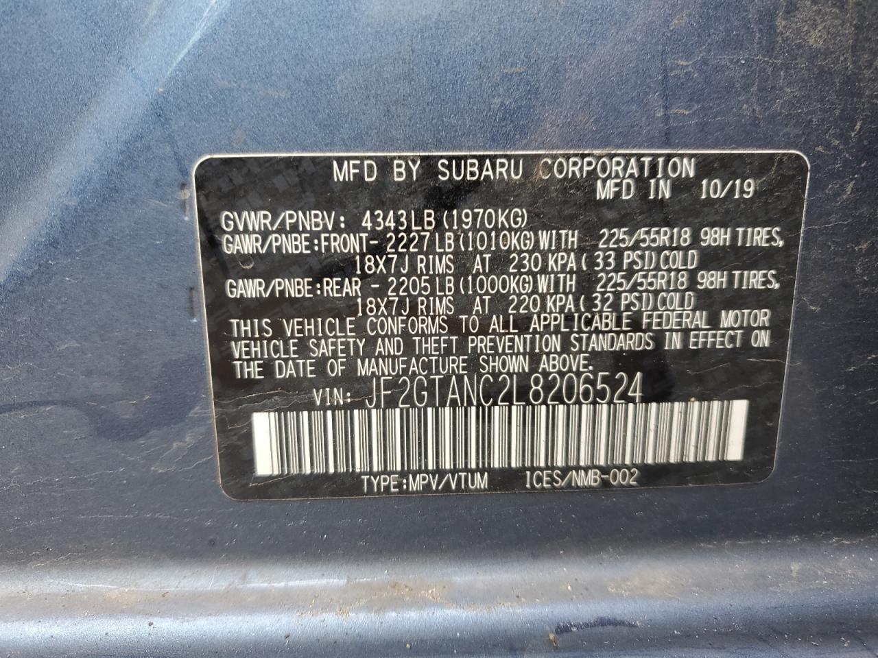 - ВИН: JF2GTANC2L8******