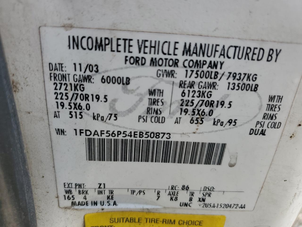 - ВИН: 1FDAF56P54E******