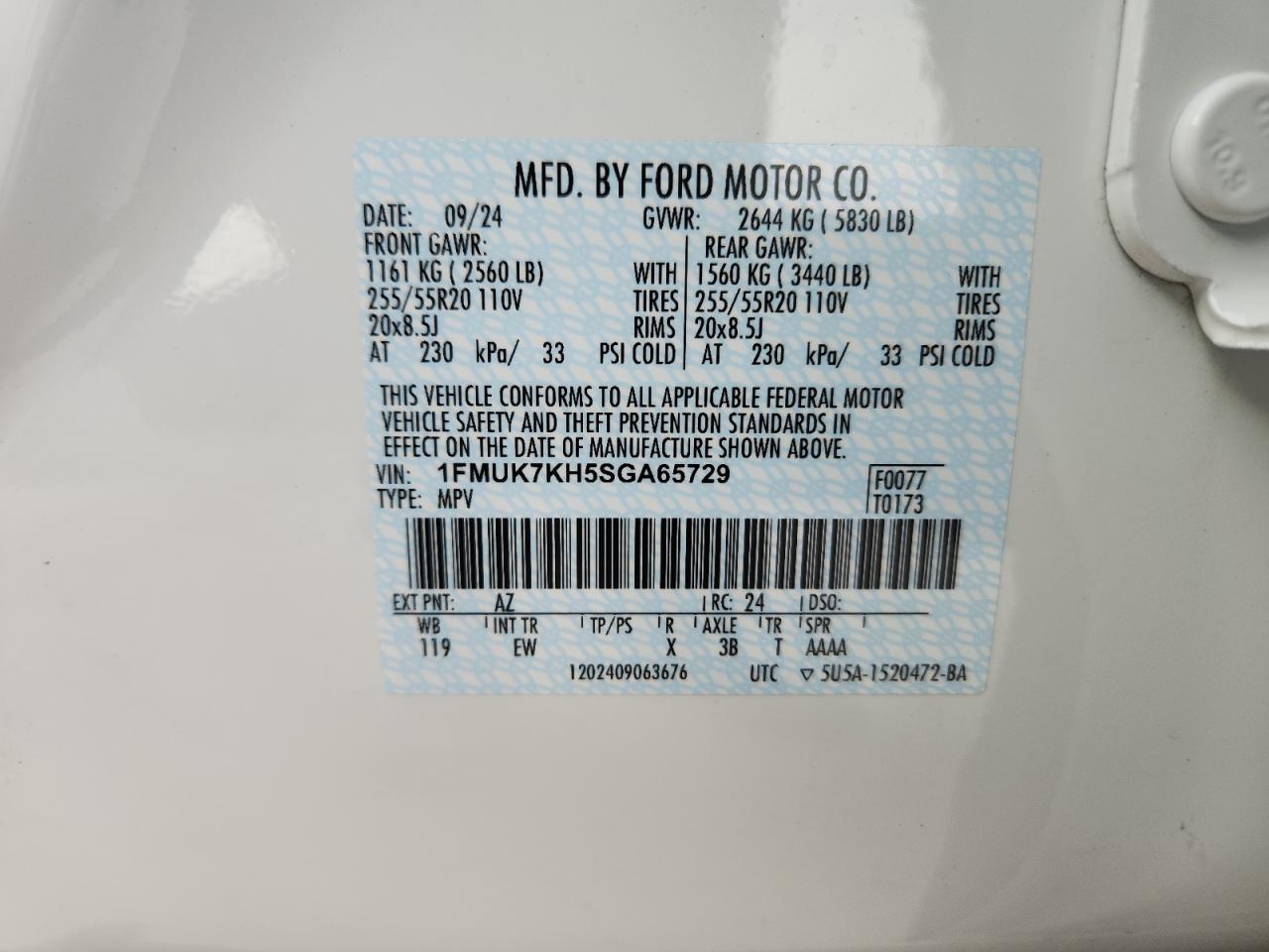 - ВИН: 1FMUK7KH5SG******