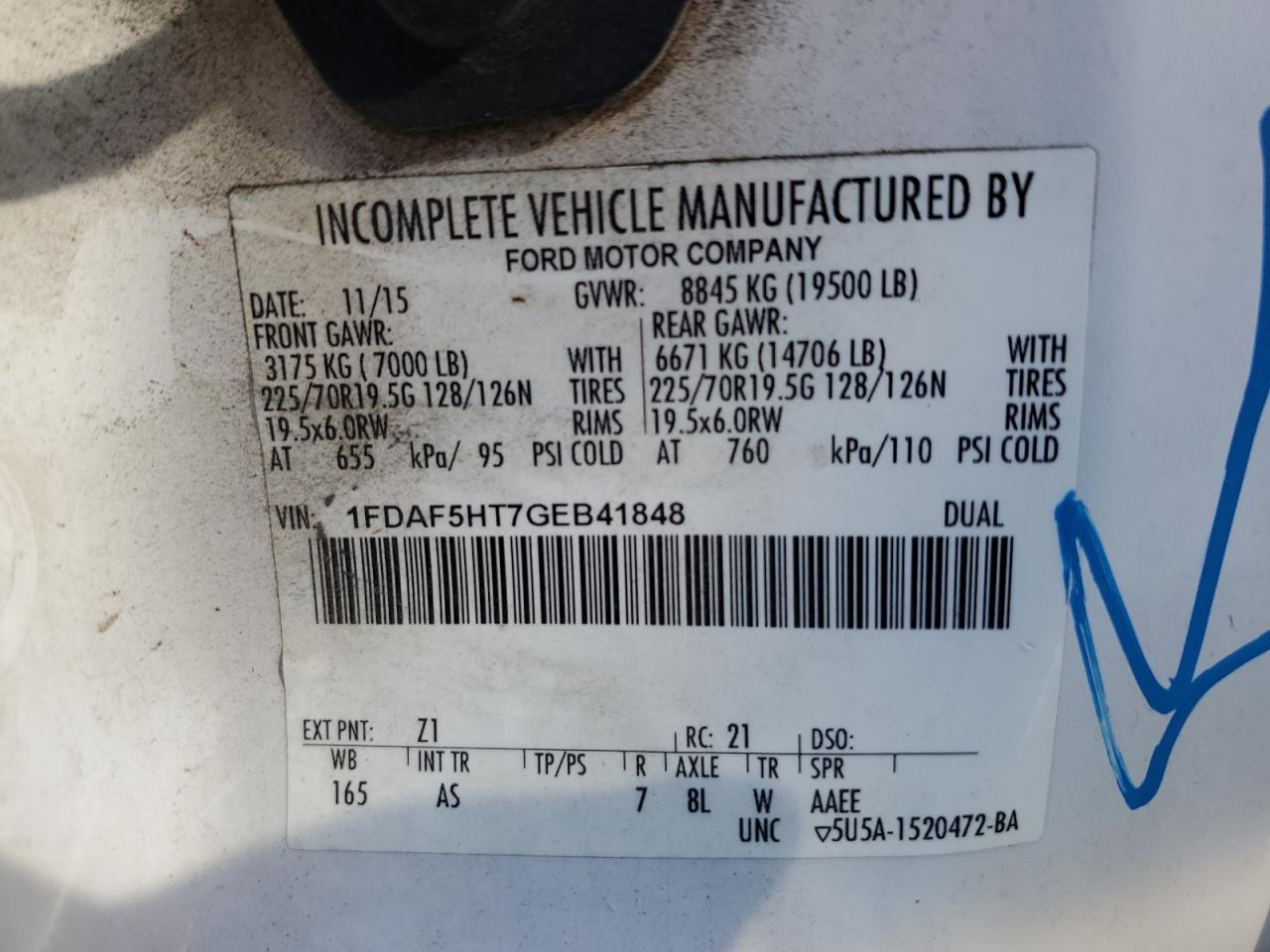 - ВИН: 1FDAF5HT7GE******