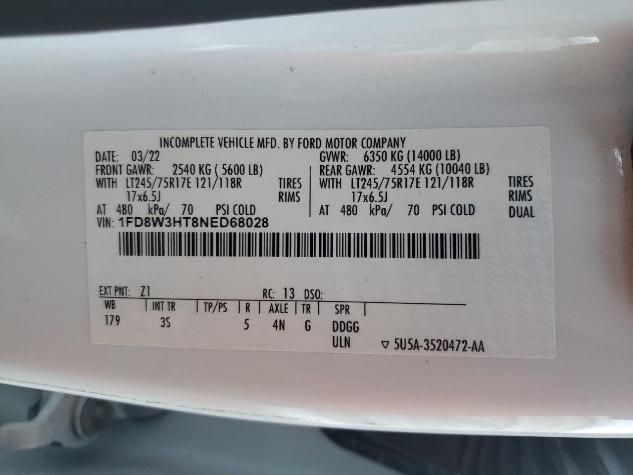 - ВИН: 1FD8W3HT8NE******
