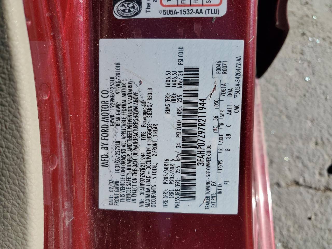 - ВИН: 3FAHP07Z97R******