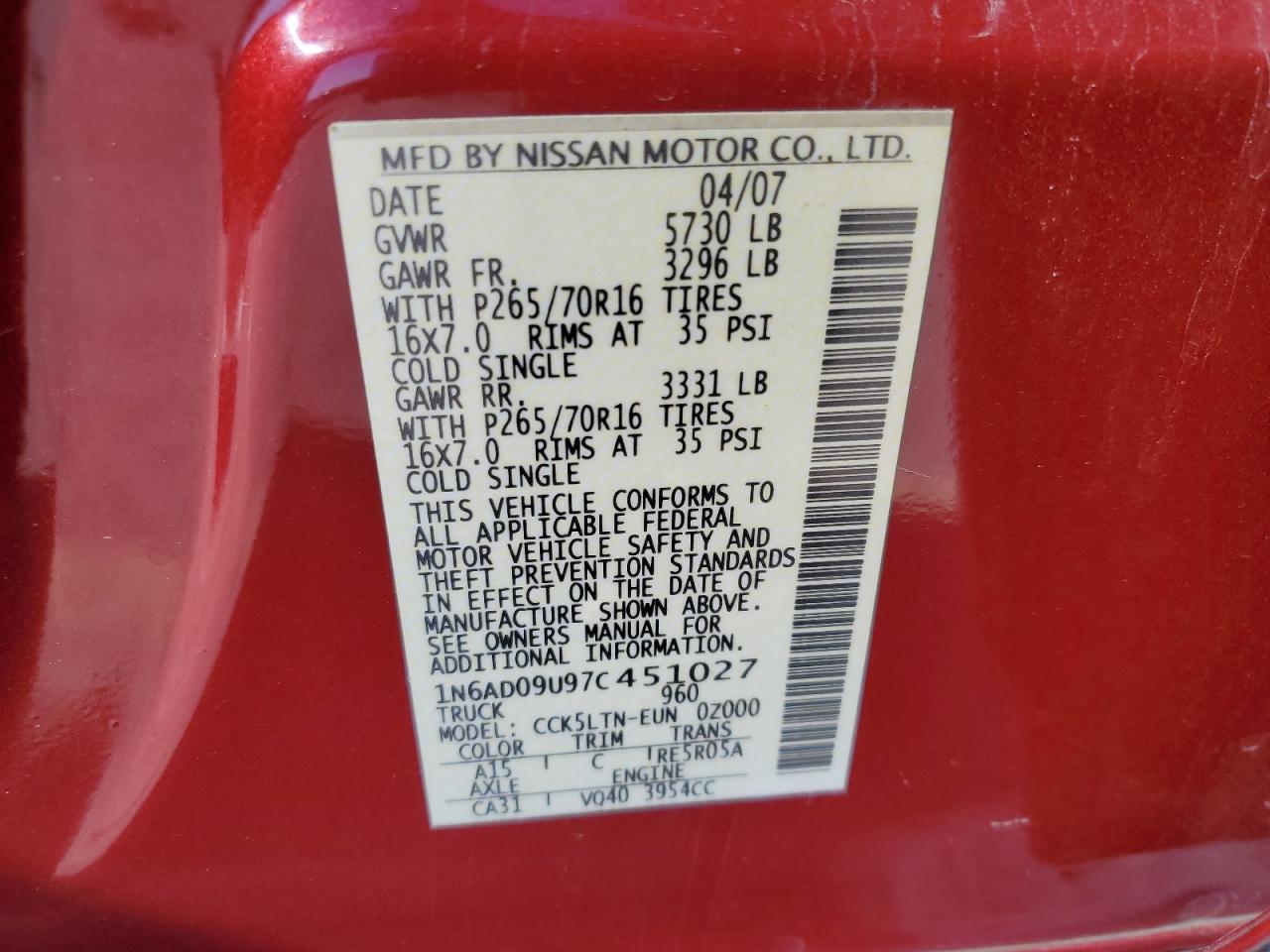 2007 NISSAN FRONTIER CREW CAB LE из США